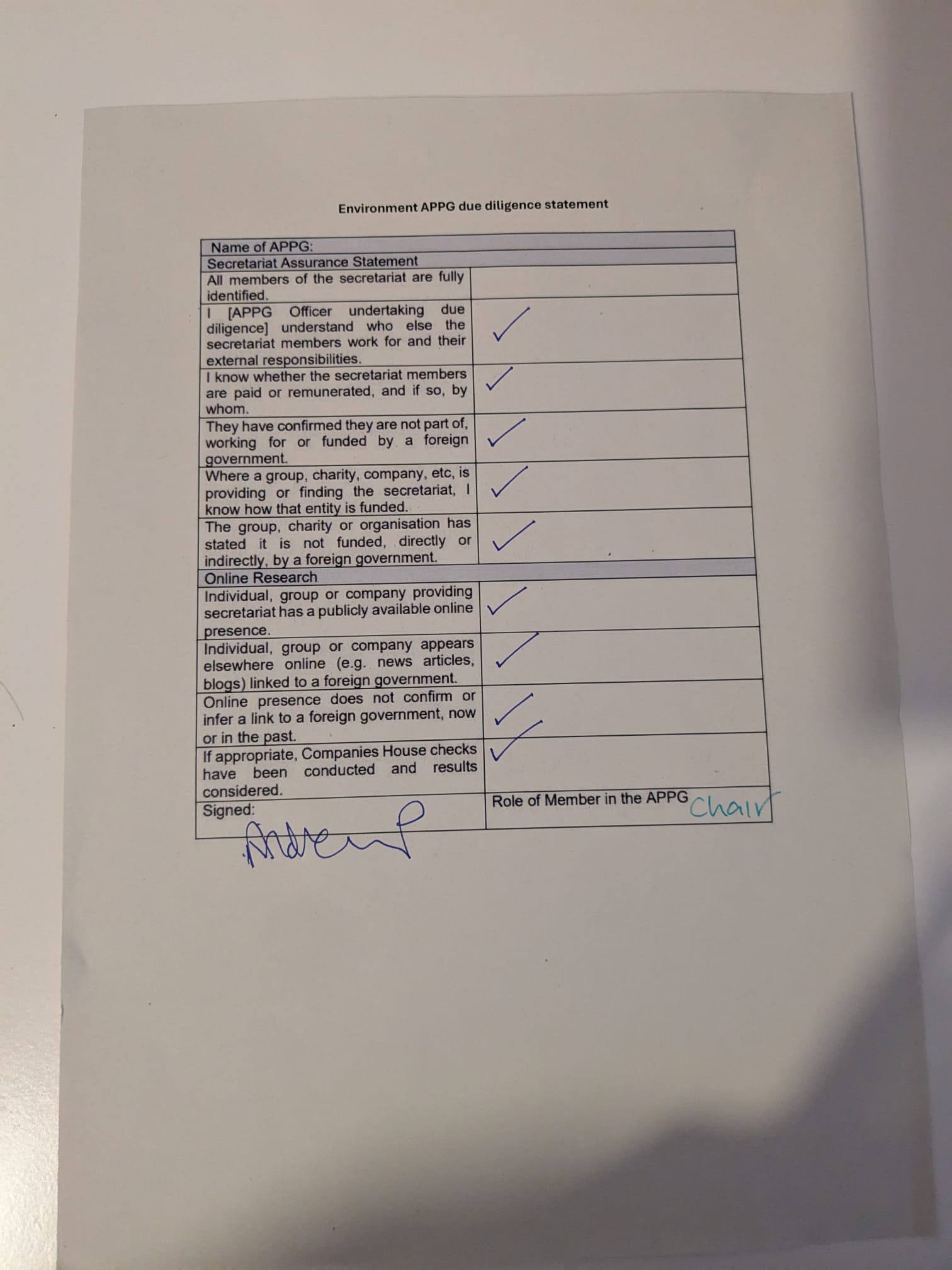 The All-Party Parliamentary Group for the Environment’s annual report, income and expenditure statement and due diligence statement can be found below, as well as minutes and attendance for the AGM.